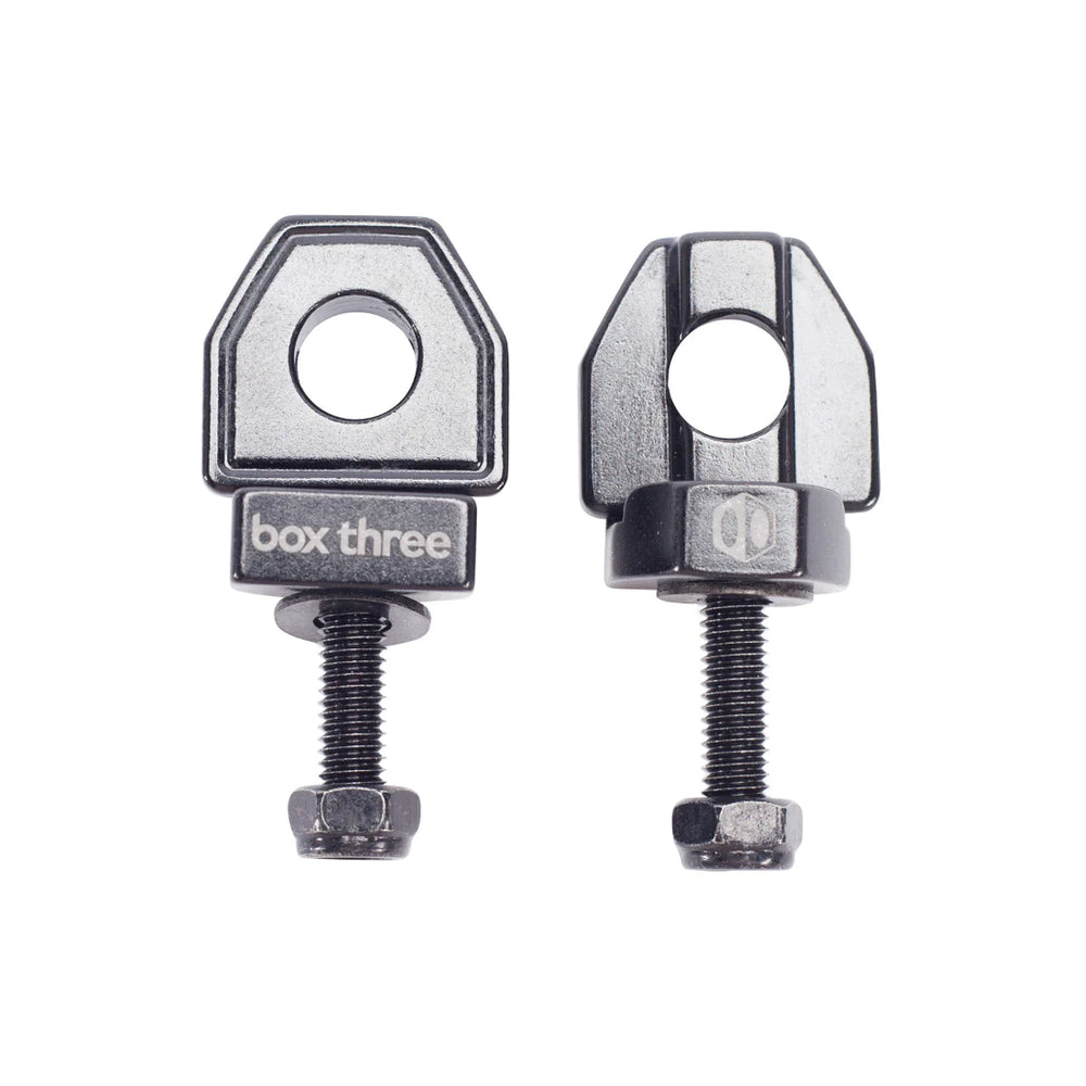 Ajuster la tension de la chaîne est facile et rapide avec le nouveau tendeur de chaîne Box Three™. Avec un design de "lollipop" à trou unique, ces tendeurs réduisent le poids et aident à maintenir votre roue arrière verrouillée en place.